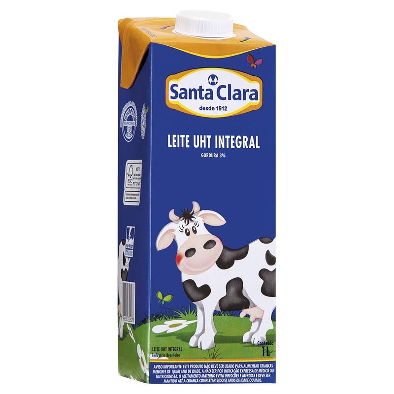 Leite Uht Santa Clara Integral Com Tampa 1l