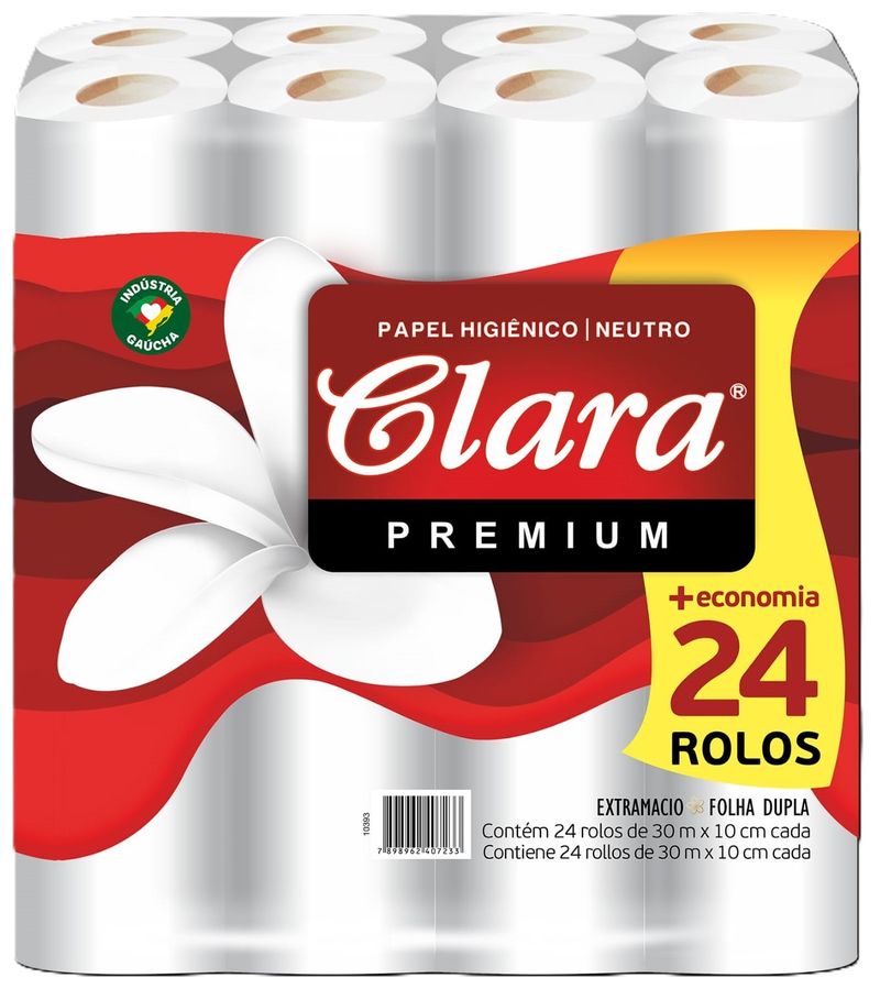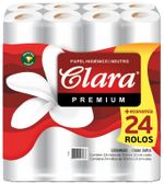 Papel Higiênico Clara Premium Neutro Folha Dupla 30 Metros Com 24 Rolos
