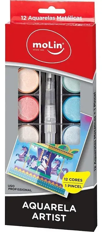 Aquarela Molin Metalica Artist Estojo C/12 Cores + Pincel