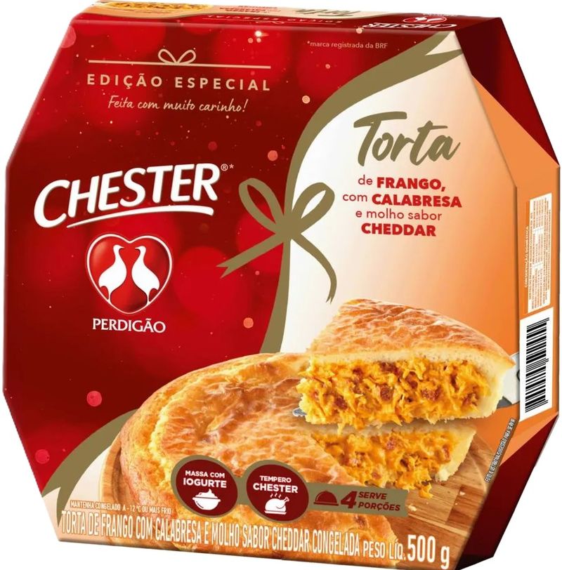 Torta De Frango Com Molho Sabor Cheddar E Calabresa Perdigão Chester Congelada 500g