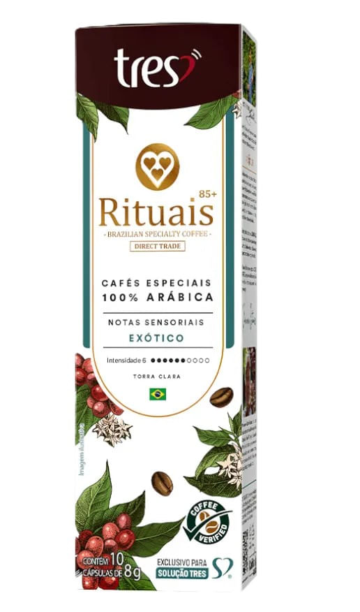 Café Em Cápsula 3 Corações Rit85+ Exótico Contém 10 Unidades De 8g Cada