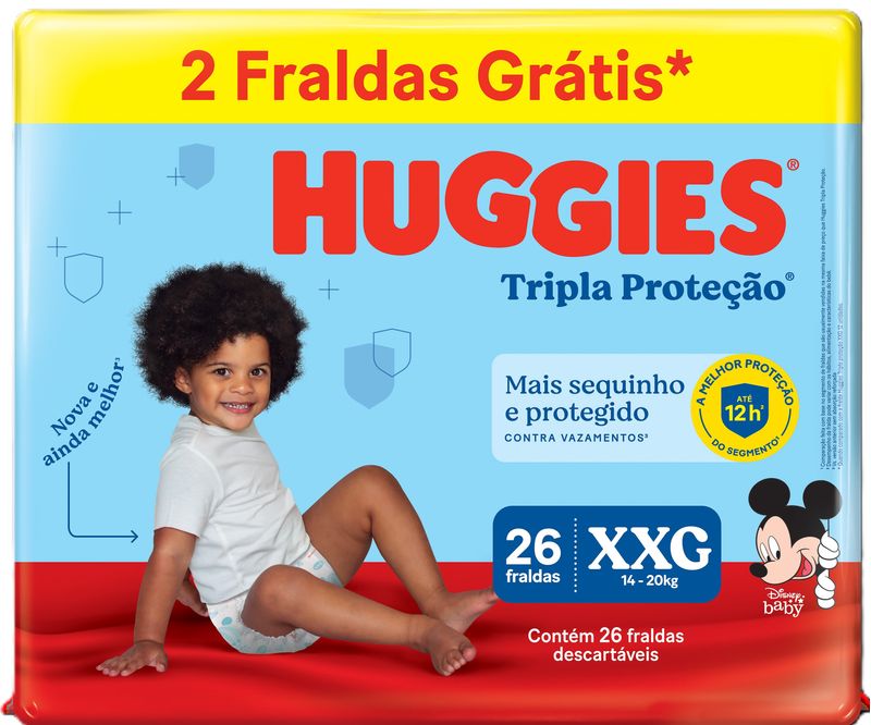 Fralda Huggies Tripla Proteção Meguinha Xxg Grátis 2un C/26