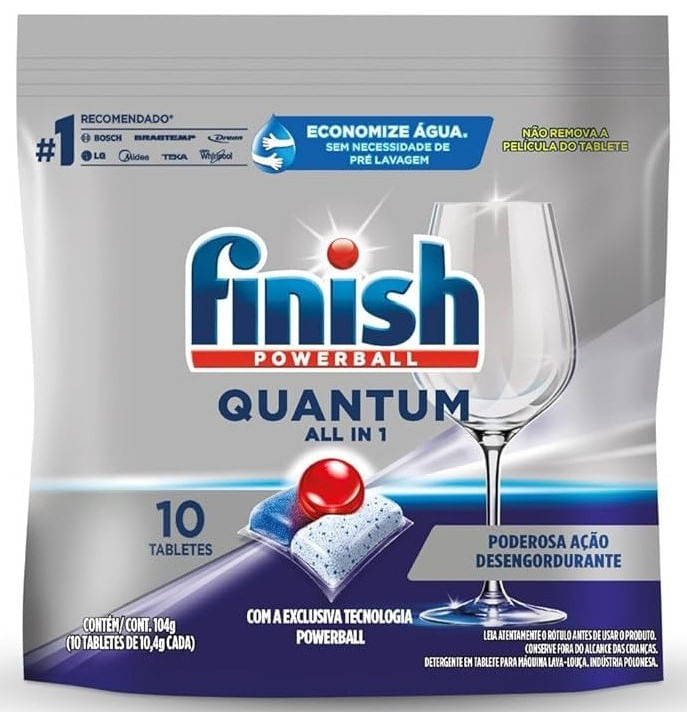Detergente Em Tablete Para Máquina De Lavar Louças Finish Powerball Quantum All In Pouch 104g