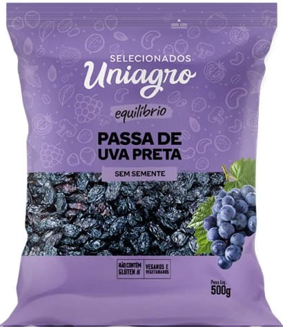 Passa De Uva Preta Sem Semente Uniagro 500g