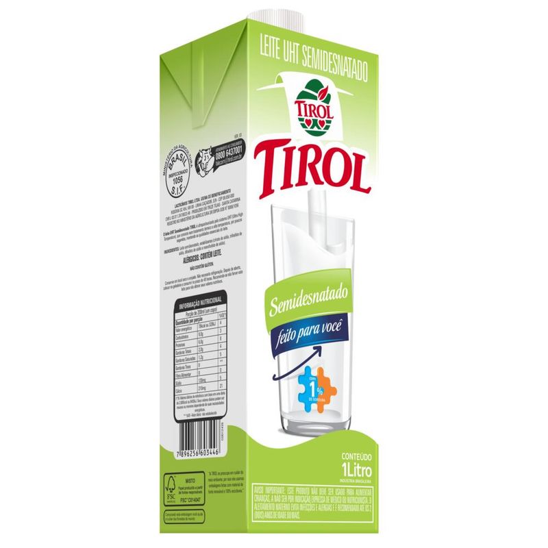 Leite Uht Semidesnatado Tirol Com Tampa 1l